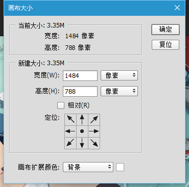 SplashExtendedBackground_s0.png,以PS CC 2014为例,需要把自己的图片大小调整为1484*788